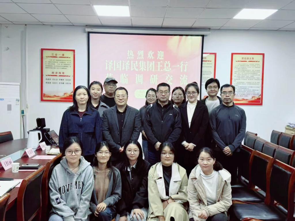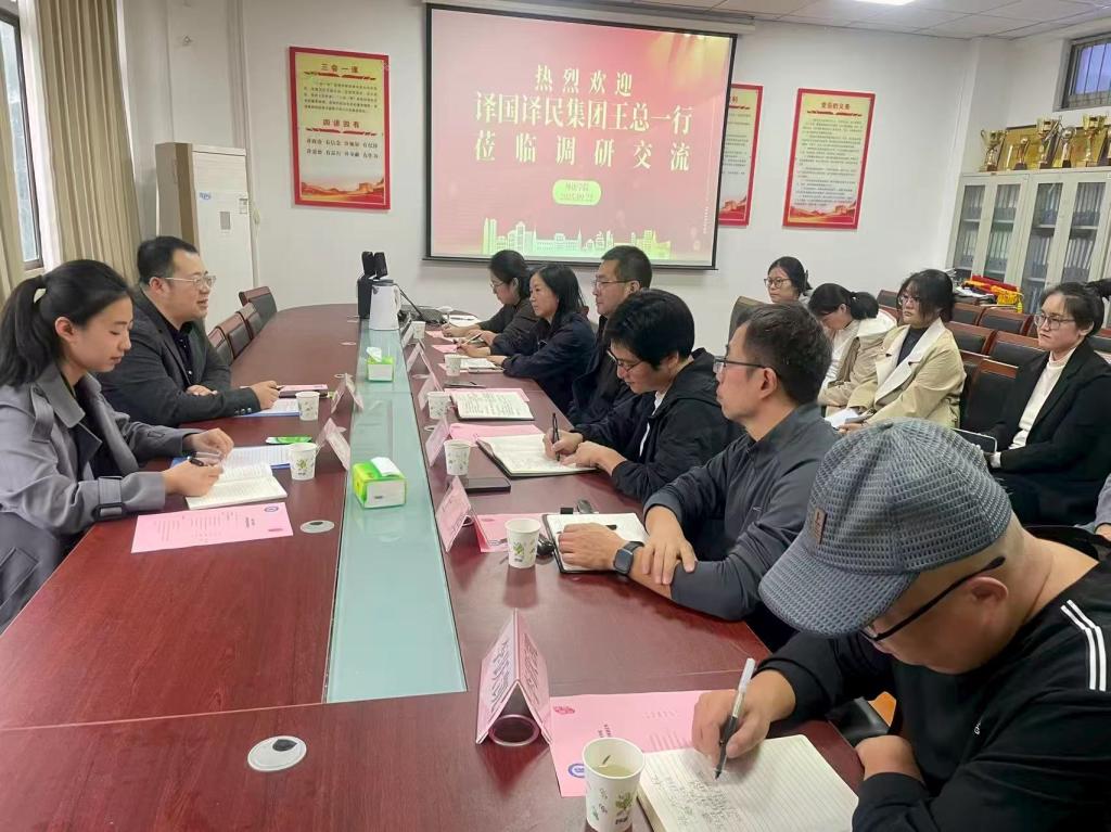 9 月 22 日下午,译国译民集团华北区总经理王晓飞、业务经理刘锐一行走访外语学院开展实地调研与合作洽谈。双方围绕人才培养、实习就业、教师发展及校企合作深化等核心议题展开深入交流。外语学院党委书记芦伟、副书记苏湉、副院长王红丽、副院长王辉及科研办、实验教学中心、翻译系、学工办负责人及部分学生代表参加调研座谈。