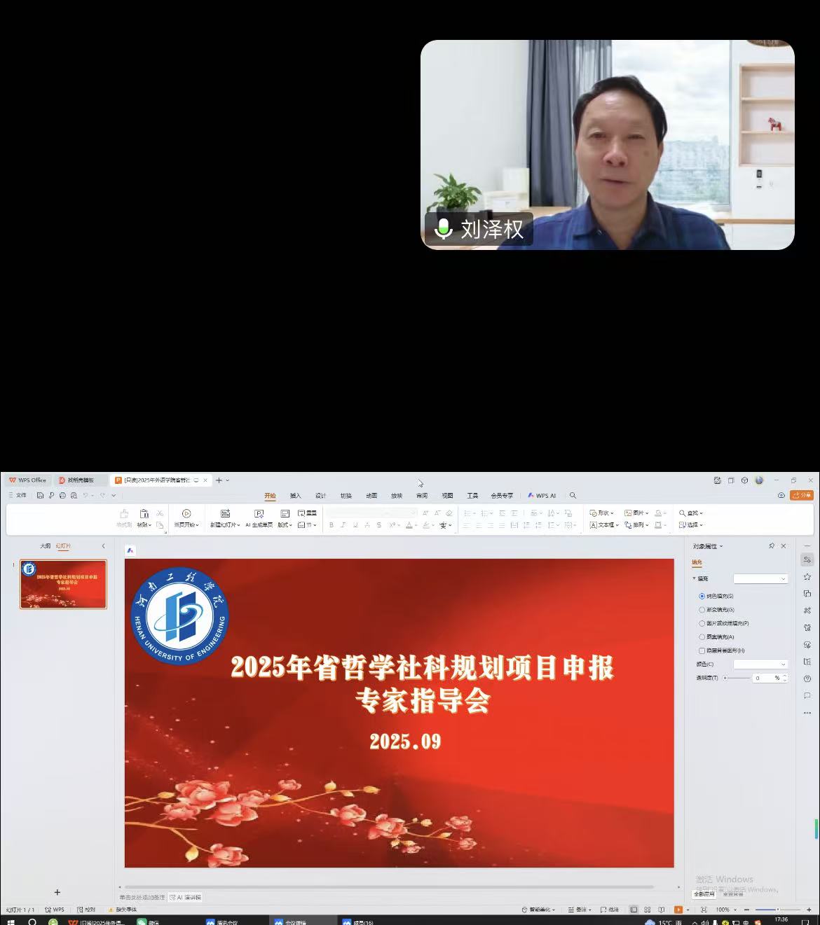 9 月 22 日晚,外语学院邀请国家社科基金项目评审专家、河南大学外语学院二级教授、博士生导师刘泽权以腾讯会议形式开展 “省级科研项目申报” 专题讲座。讲座由外语学院副院长王红丽主持。外语学院全体教师参加。