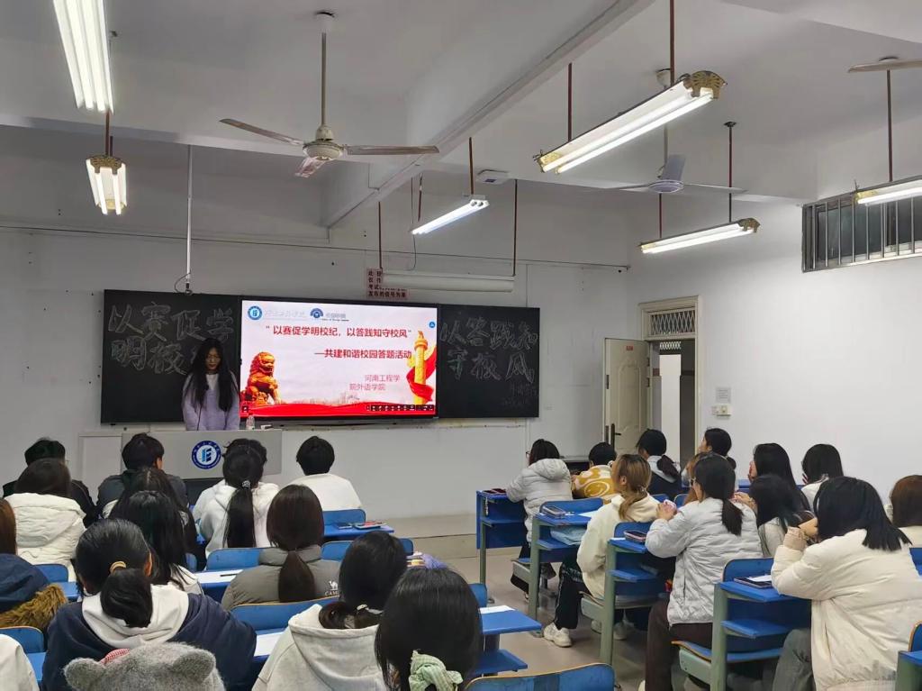 为进一步增强学生对校规校纪的了解,提升校园文明素养,营造和谐有序的学习环境,2025年11月3日,外语学院面向全体学生举办了"以赛促学明校纪,以答践知守校风"—共建和谐校园答题活动。